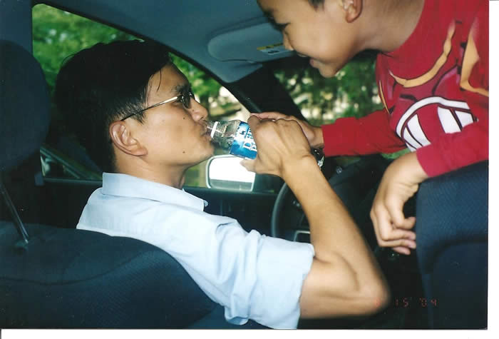 爸爸,喝口水。